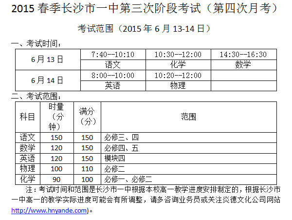下一篇:2015年春季長沙市一中高一期末考試范圍(2015.07.07-08)