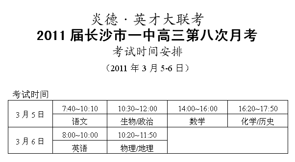 上一篇:炎德英才大聯(lián)考長沙市一中2011屆高三第七次月考考試時(shí)間