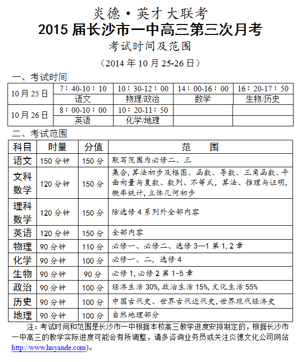 上一篇:炎德英才大聯(lián)考長沙市一中2015屆高三第2次月考考試時間和范圍(2014.09.20-21)