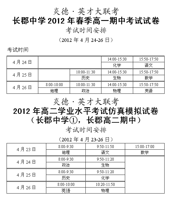 來(lái)源:炎德文化點(diǎn)擊:2012-04-20 09:49:04收藏本文當(dāng)前位置:考試范圍 長(zhǎng)郡中學(xué) 高一 正文