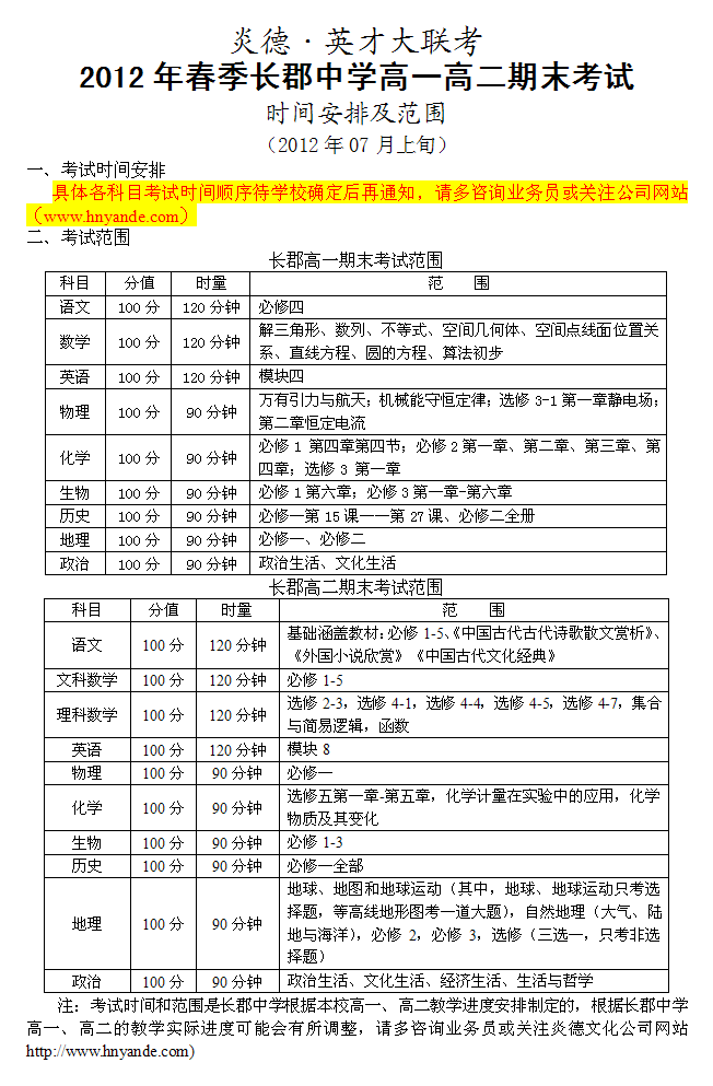 上一篇:長郡中學(xué)2012年春季高一高二期中考試時間安排