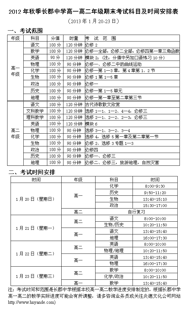 上一篇:2012年秋季長郡中學(xué)高一高二期中考試時間安排(2012.111.12-14)
