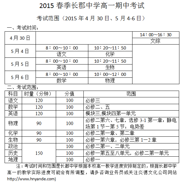 下一篇:2015年春季長郡中學高一期末考試考試范圍(2015年7月8-10日)