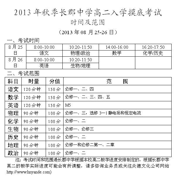 下一篇:2013年秋季長郡中學高二第一次月考考試時間和范圍(2013.10.06-07)