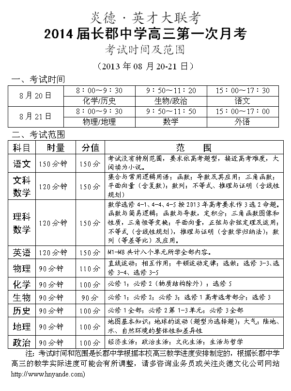 下一篇:炎德英才大聯(lián)考長郡中學(xué)2014屆高三月考試卷考試時間和范圍(第1-10次)