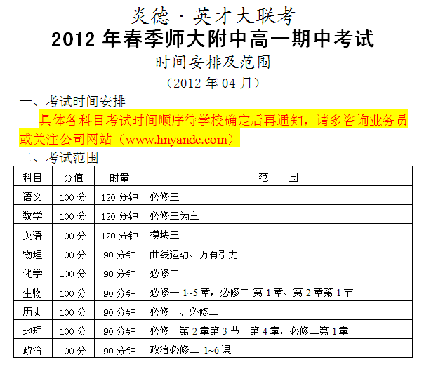 上一篇:2011秋季湖南師大附中高一期末考試時間和范圍