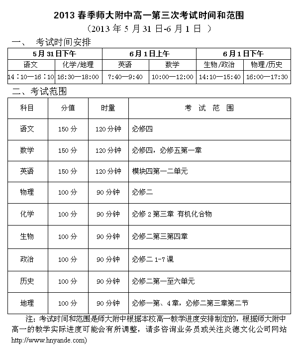 下一篇:2013年春季師大附中學(xué)高一期末考試時(shí)間范圍(2013.07.05-07)