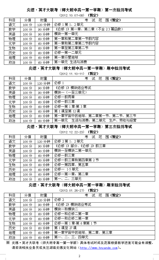 下一篇:2012年秋季師大附中高一高二期中考試(第二次月考)時(shí)間范圍(2012.11.07-10)
