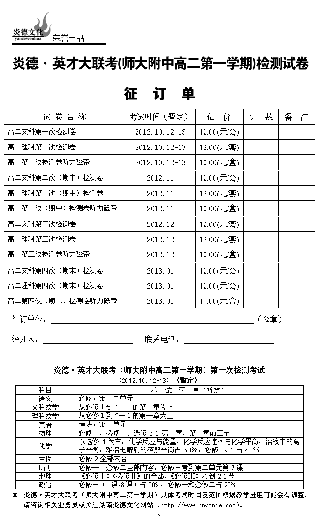 來(lái)源:炎德文化點(diǎn)擊:2012-09-24 10:09:00收藏本文當(dāng)前位置:考試范圍 師大附中 高二 正文