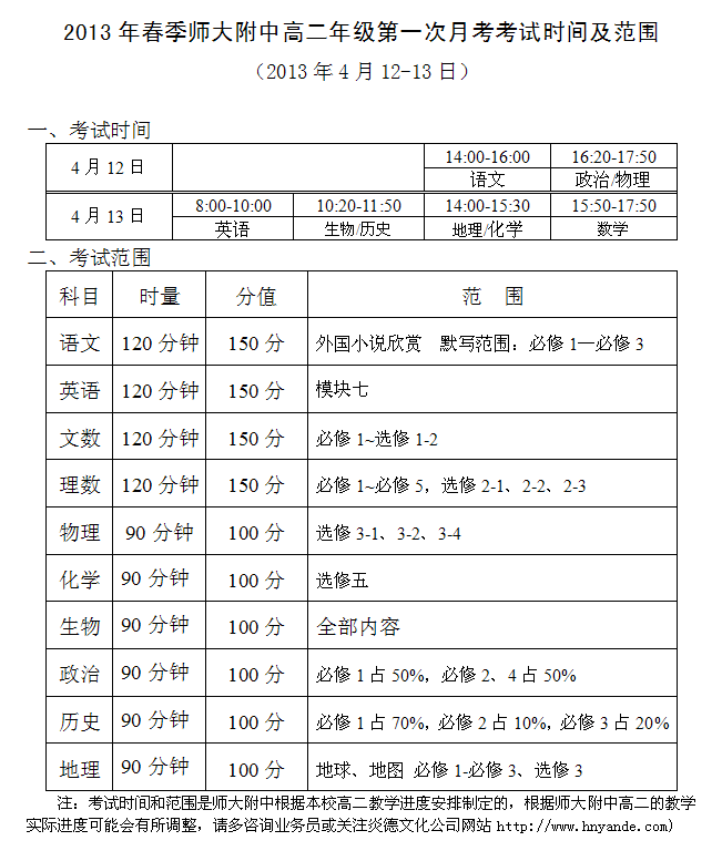 下一篇:2013年春季師大附中高二學(xué)業(yè)水平考試仿真模擬卷②考試時間安排(2013.05.24-25)