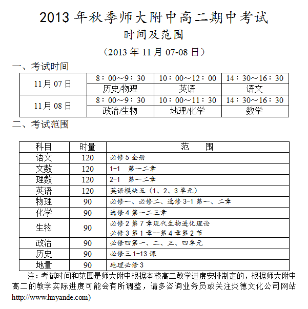 上一篇:2013年秋季師大附中高二第一次月考考試時間和范圍(2013.10.06-07)