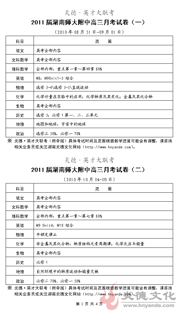 下一篇:炎德英才大聯考湖南師大附中2011屆高三第一次月考考試時間和范圍