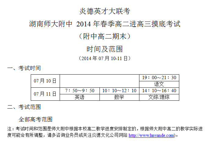 下一篇:炎德英才大聯(lián)考師大附中2015屆高三第1次月考考試時間和范圍(2014.08.29-30)