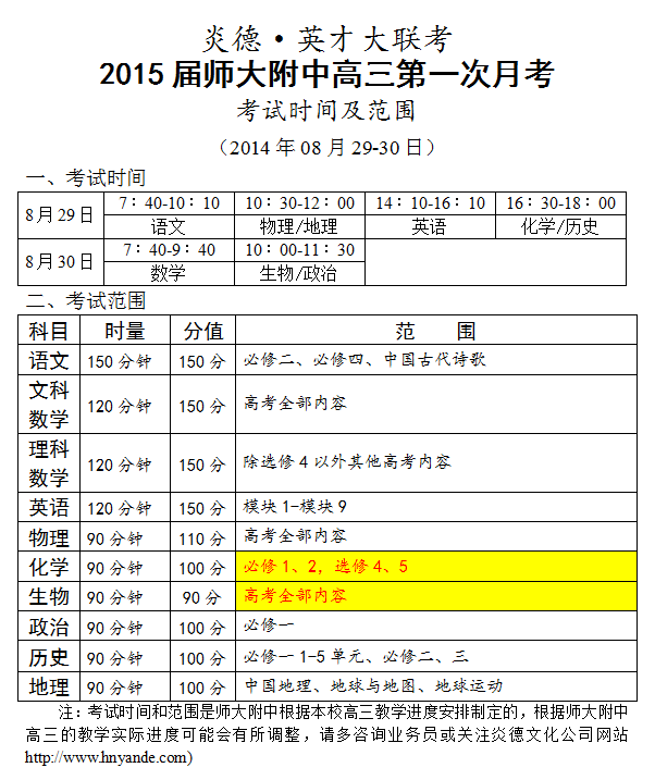 下一篇:炎德英才大聯(lián)考湖南師大附中2015屆高三月考試卷考試時間和范圍(第1-10次)