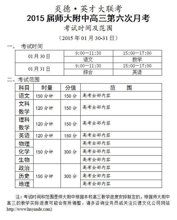 下一篇:炎德英才大聯(lián)考師大附中2015屆高三第7次月考考試時間和范圍(2015.02.27-28)