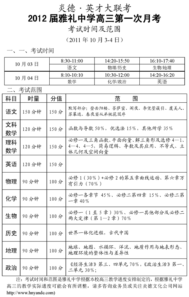 來源:本站原創(chuàng)點擊:2011-09-27 15:44:08收藏本文當(dāng)前位置:考試范圍 雅禮中學(xué) 高三 正文