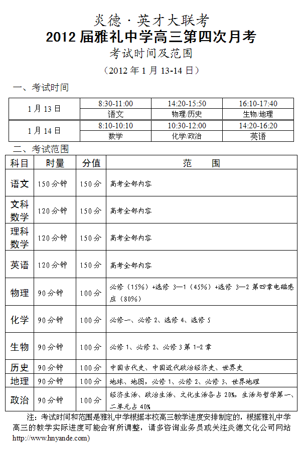 來(lái)源:炎德文化點(diǎn)擊:2012-01-09 10:21:22收藏本文當(dāng)前位置:考試范圍 雅禮中學(xué) 高三 正文