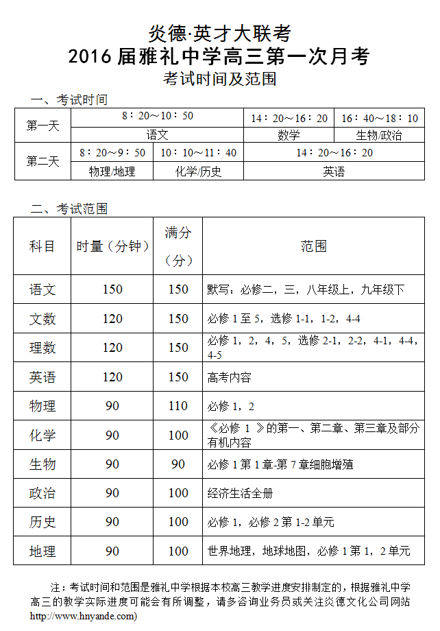 上一篇:炎德英才大聯考雅禮中學2016屆高三月考考試時間和范圍