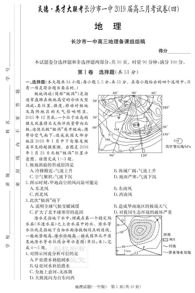 【地理】炎德英才大聯(lián)考2019長(zhǎng)沙一中高三4次月考