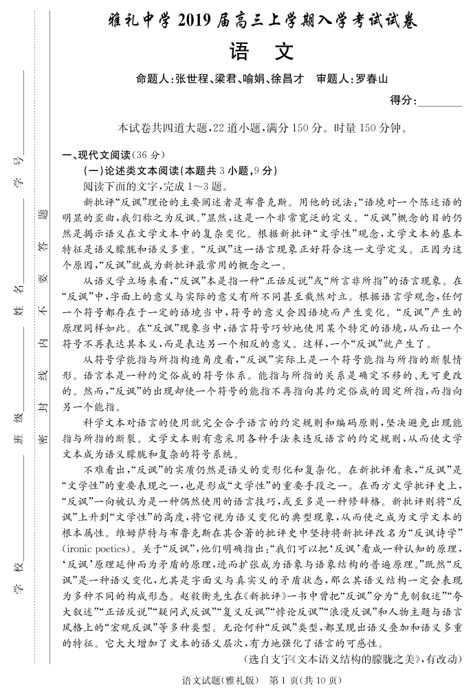 | 資源類別: | 名校月考 | |