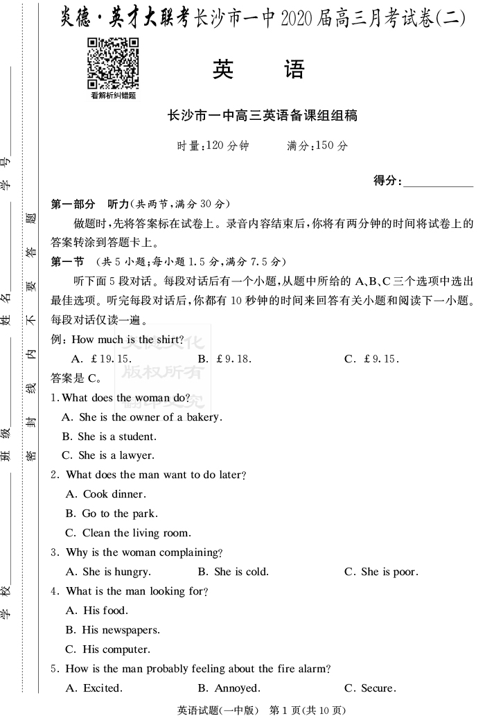 | 資源類別: | 名校月考 | |
