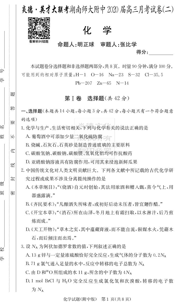2025名師導學·名校名卷經(jīng)典試題匯編·化學
