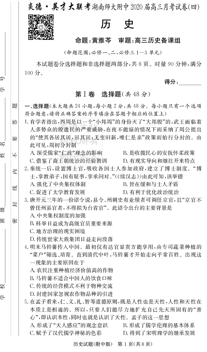 2025名師導學·名校名卷經典試題匯編·歷史
