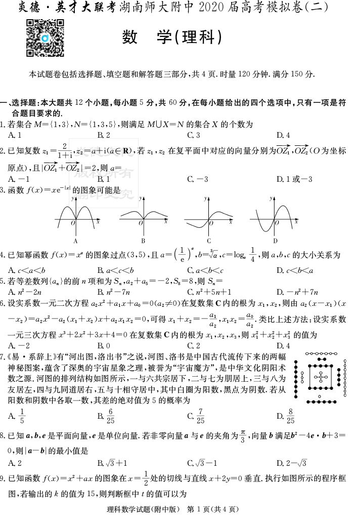 【理數(shù)】炎德英才大聯(lián)考2020屆師大附中高三9次月考(模擬二)