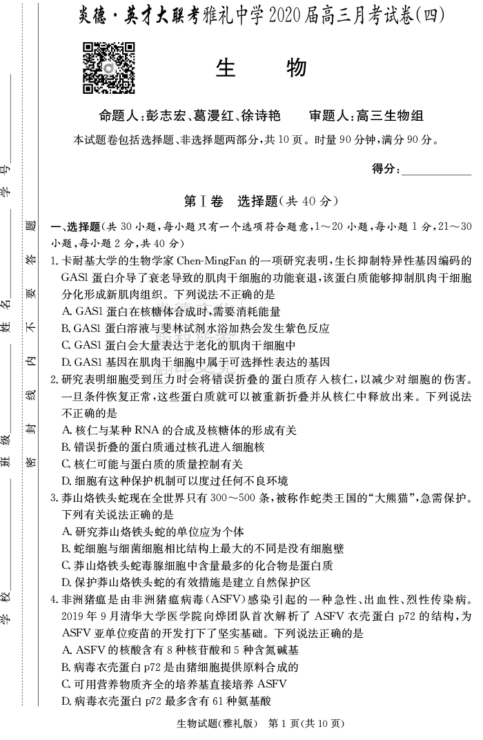 | 資源類別: | 名校月考 | |