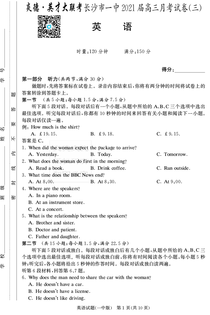 | 資源類別: | 名校月考 | |