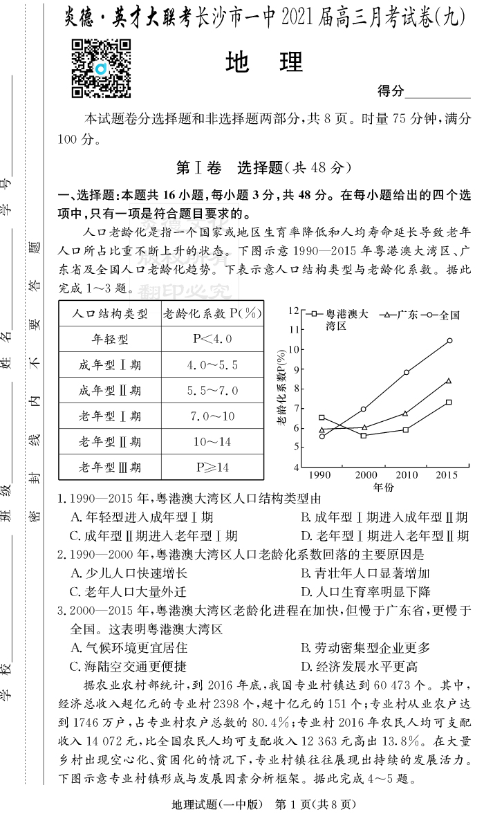 【地理】炎德英才大聯(lián)考2021屆長沙市一中高三9次月考