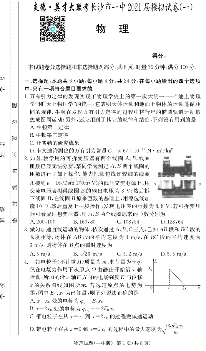 下一篇:【英語】炎德英才大聯(lián)考2021屆長沙市一中高三10次月考(模擬一)