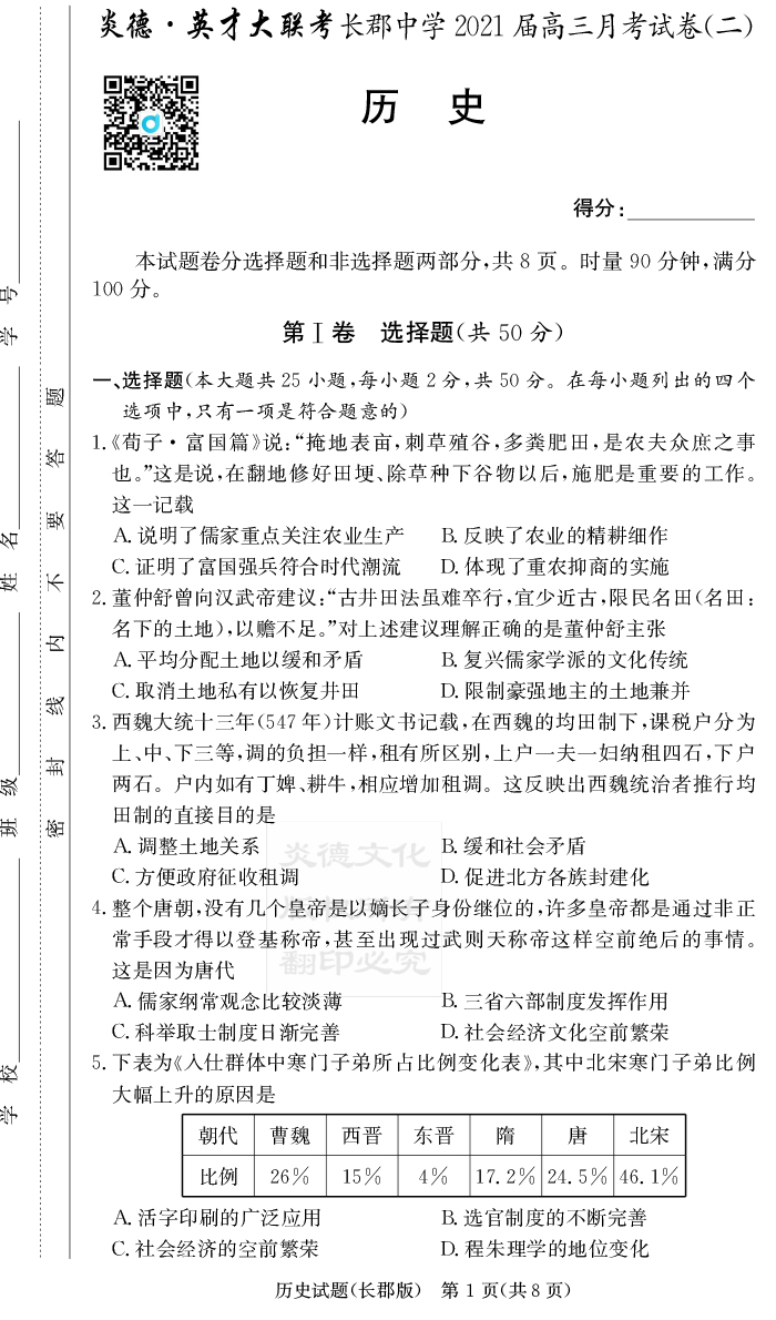 | 資源類別: | 名校月考 | |