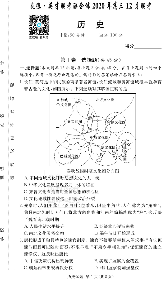 【歷史】炎德英才大聯(lián)考2021屆長郡中學(xué)高三4次月考(高三聯(lián)合體12月聯(lián)考)