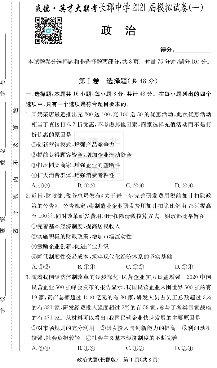 | 資源類別: | 名校月考 | |