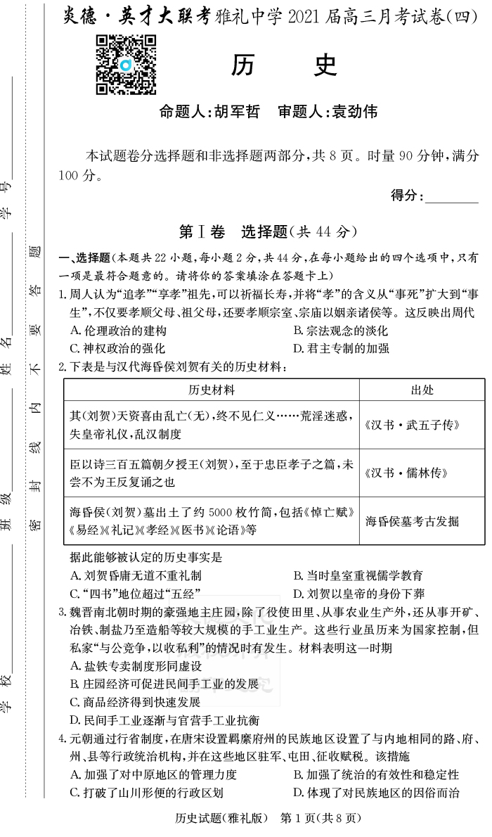 2025名師導學·名校名卷經(jīng)典試題匯編·歷史