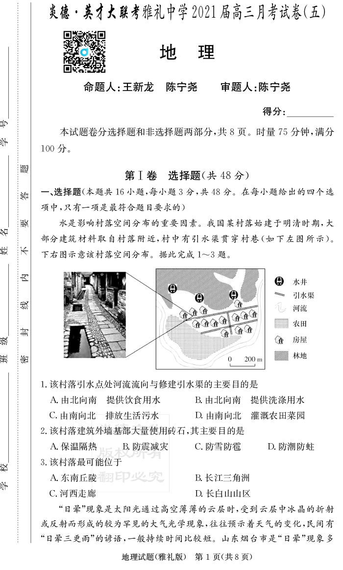 【地理】炎德英才大聯(lián)考2021屆雅禮中學高三5次月考