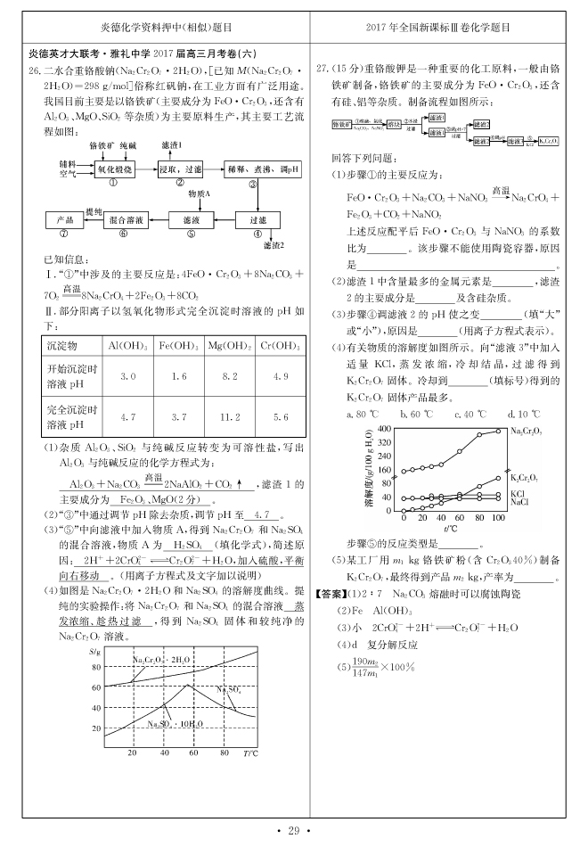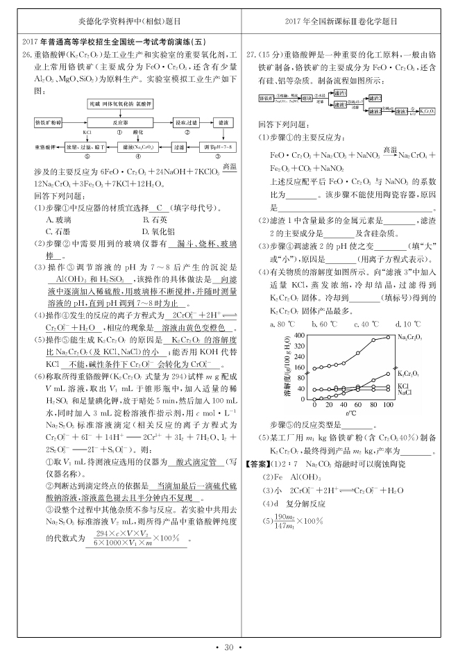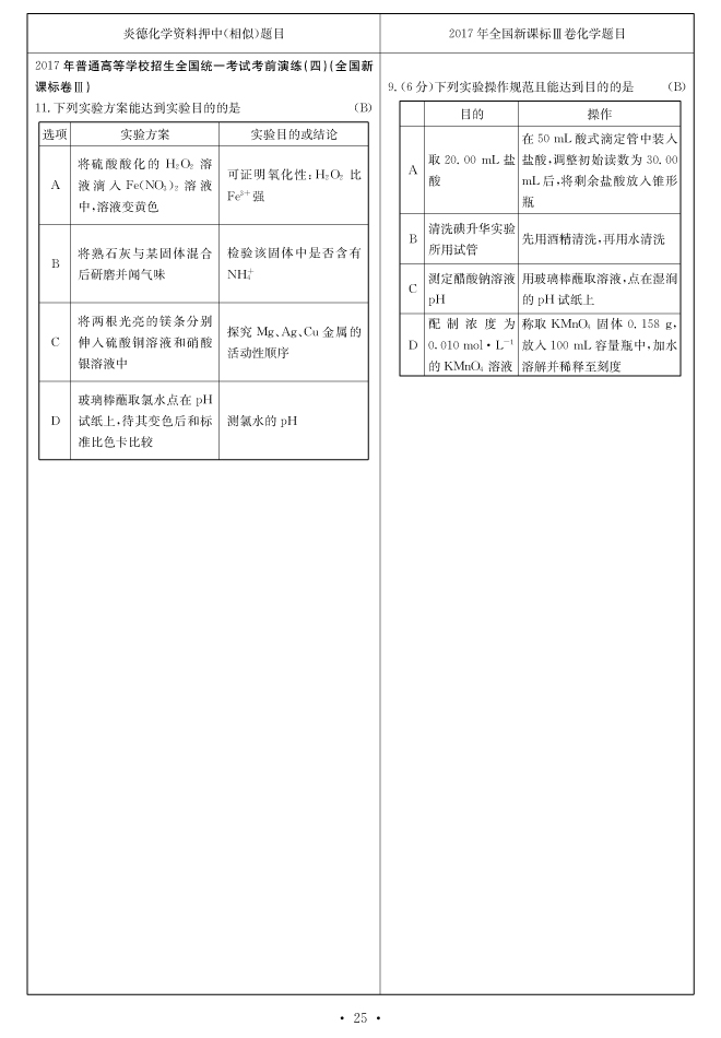 2017高考全國(guó)卷Ⅲ對(duì)分表-化學(xué)