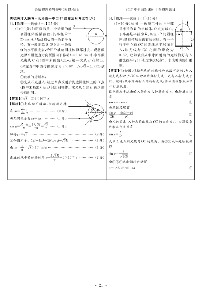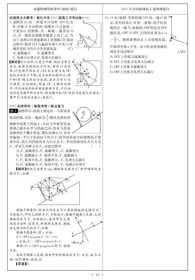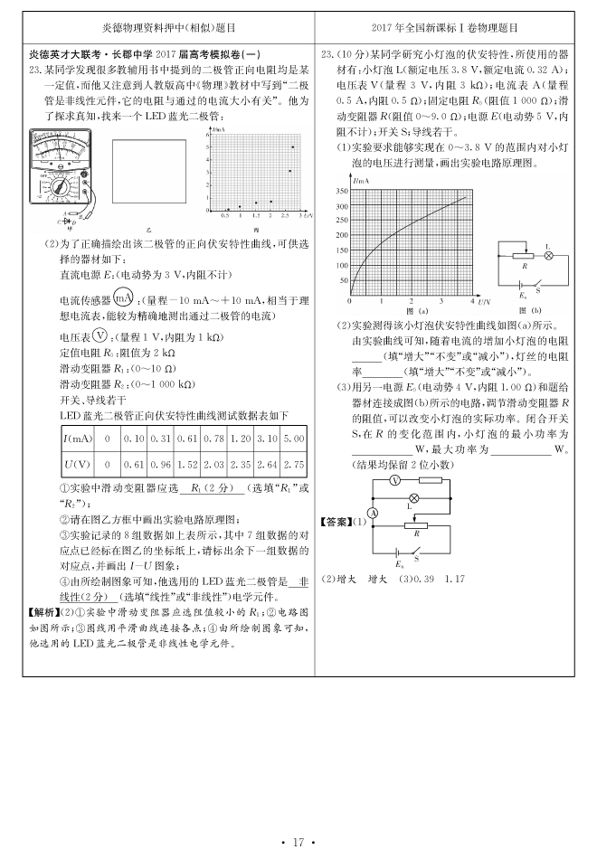 2017高考全國(guó)新課標(biāo)卷Ⅰ對(duì)分表-物理